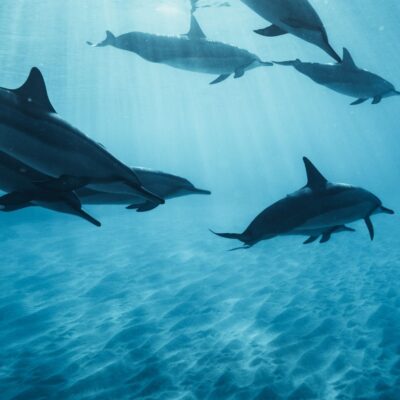 Dolphins have a typical cruising speed of 5-7 miles per hour (8-11 km/h), but some species, like the short-beaked common dolphin, can reach up to 37 mph (60 km/h).